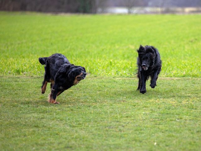 Und Jette findet auch, dass es ein schöner Morgen ist. Sie fordert mich auf ihren Ball zu werfen. Aber hinrennen und den Ball holen das muss jetzt nicht unbedingt sein. Gut, dass Mylo dabei ist, der freut sich über die Chance auch einmal den Ball zu ergattern. Jette schaut ihm nach und sobald er zurück ist wird sie ihn auffordern, ihr die Beute zu übergeben.