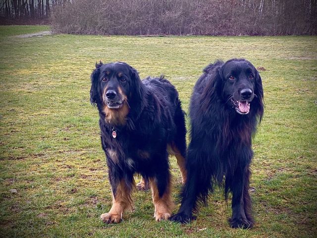 Bibie hat heute zur Feier des Tages ihr "richtiges" Halsband bekommen und Yuma hat heute ebenfalls zur Feier des Tages das erste Mal das Beinchen gehoben. Ja, sie schicken sich an erwachsen zu werden. Davor gibt es in nächster Zukunft für alle zusammen eine größere Hürde zu überwinden nämlich die Pubertät. Wird schon werden. Ihr Fraules und Herrles verliert nicht den Mut. Das Gehirn der Hunde ist zeitweilig wegen Umbau geschlossen aber hinterher ist alles wieder geordnet und wie Phönix aus der Asche tritt euch plötzlich ein Hovawart entgegen, der genauso fröhlich wie vorher ist aber gereifter, verständiger, nämlich euer Kumpel für viele Jahre.