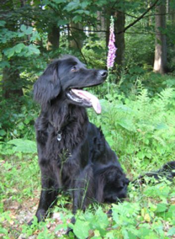 vollst. Scherengebiss, etwas liebevoll gefüttert, tiefschwarzes schlicht gewelltes Haarkleid von korr. Länge und Struktur,