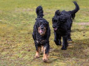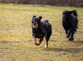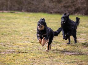 Zuhause angekommen ist die Erwartung groß. Was gibt es zum Frühstück? Jette bekommt seit wenigen Tagen ein gehaltvolleres Futter, das ihr prima schmeckt. Nichts außergewöhnliches für einen Hovawart. Mylo ist der Meinung auch sein kleines Schüsselchen hat den gleichen Inhalt und er freut sich drüber.